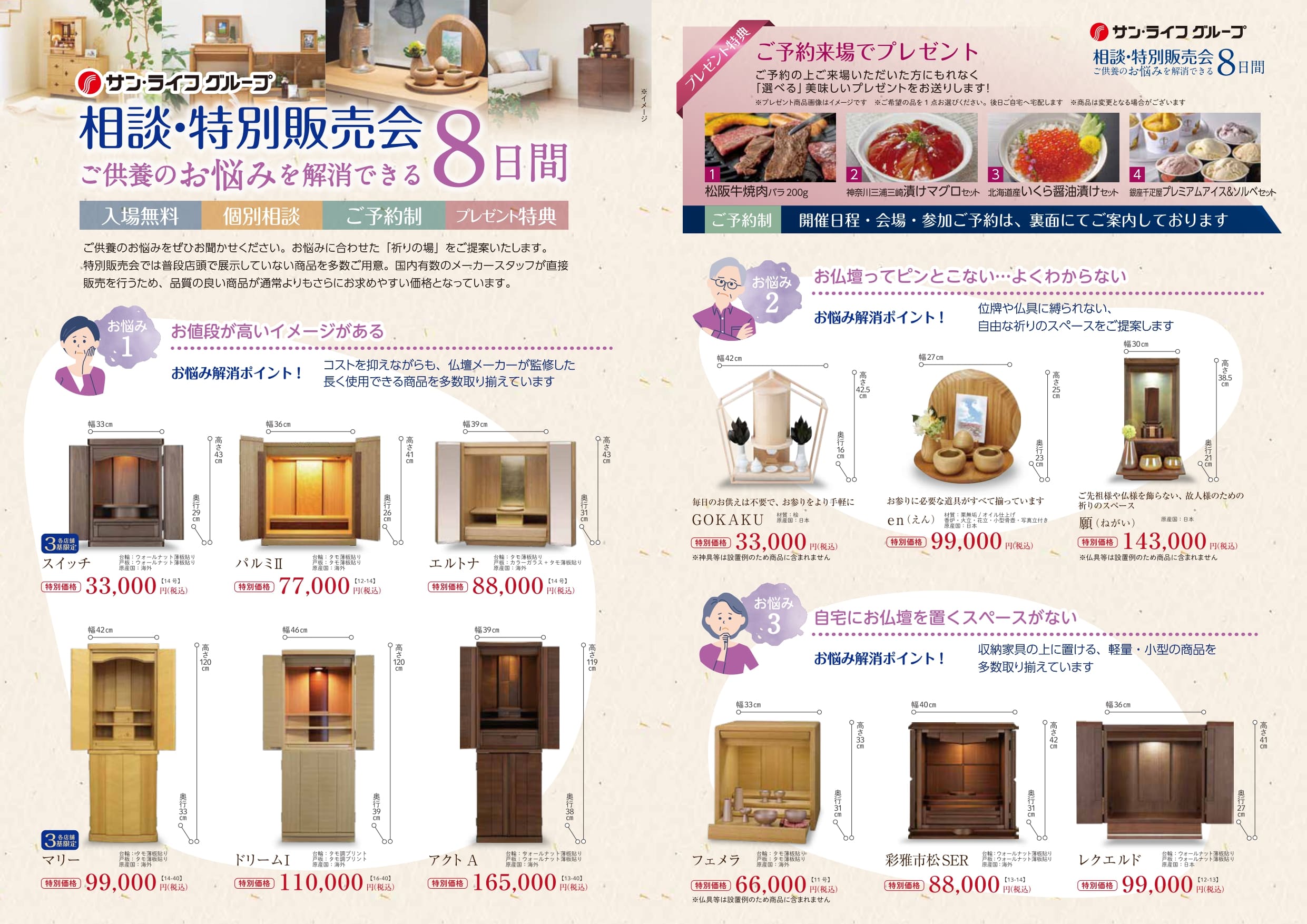ご供養のお悩みを解消できる 相談・特別販売会のご案内