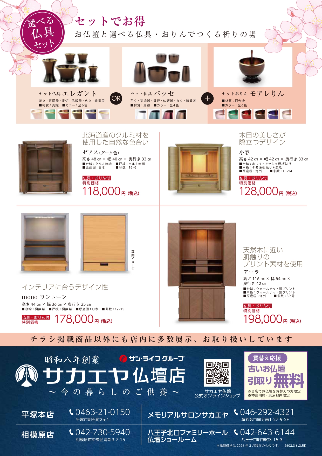 サカエヤ仏壇店では2026年5月31日(日)までスプリングセールを行っております。