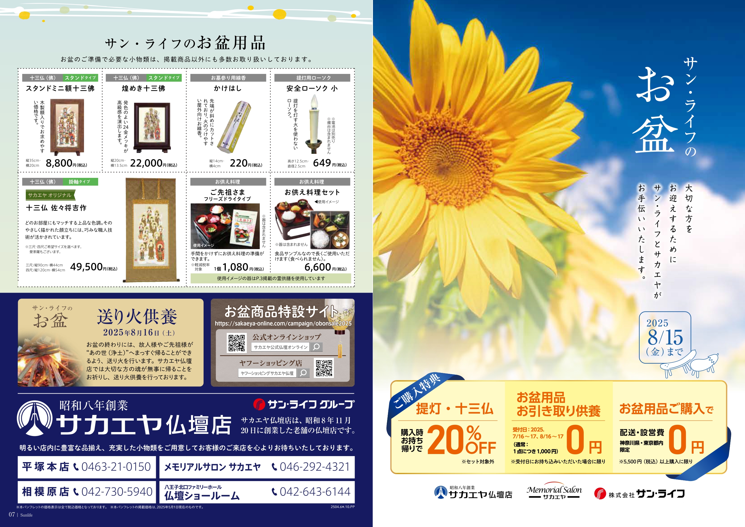 【2025年8月15日(金)まで】サン・ライフ サカエヤ仏壇店 お盆のご案内