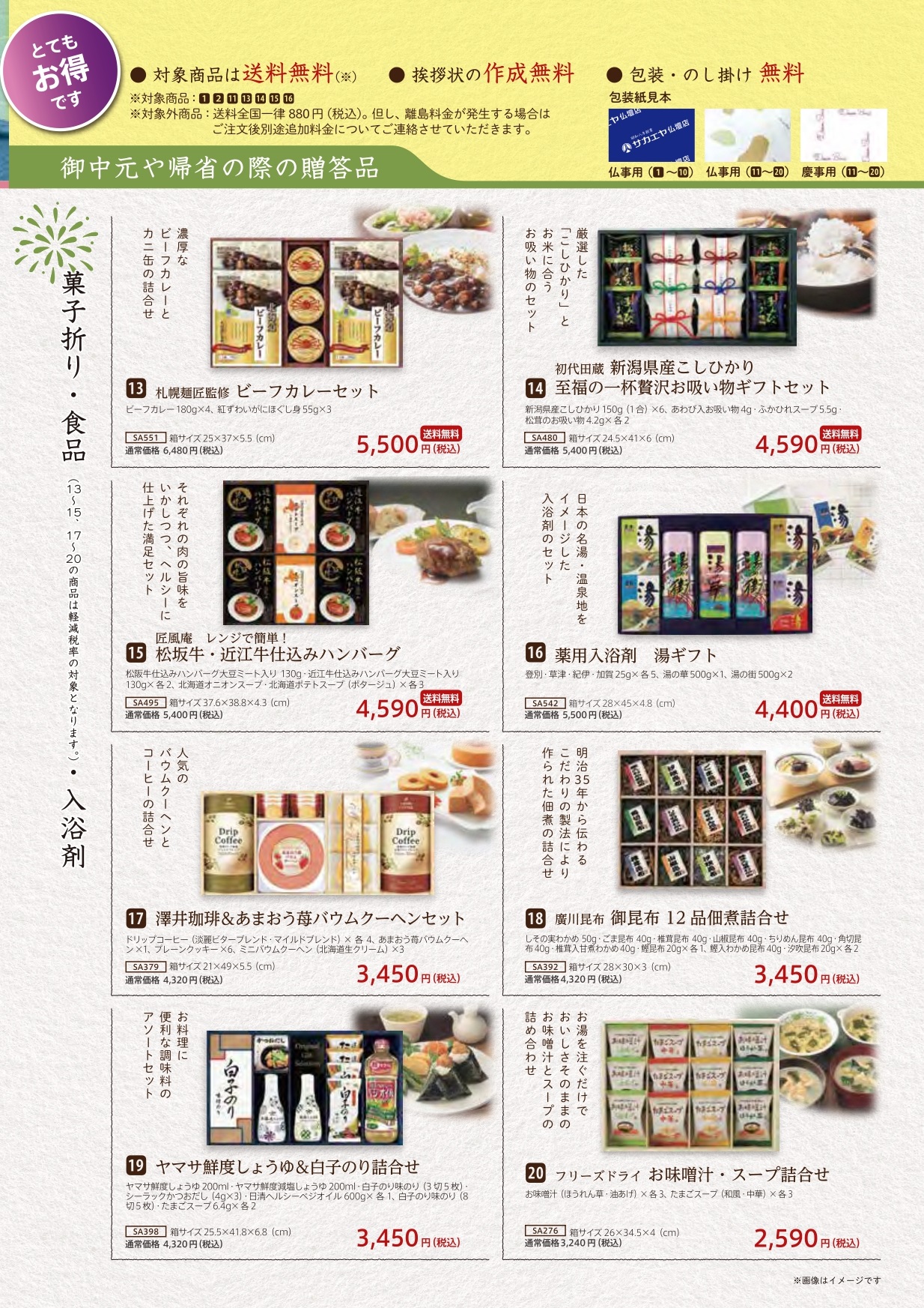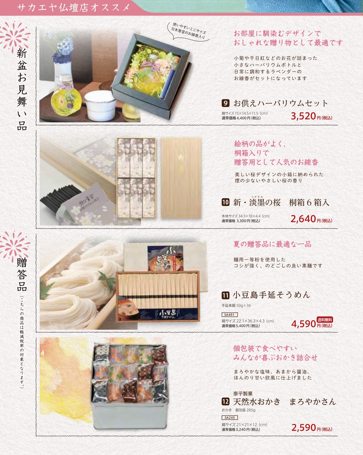 新盆お見舞いとしてお使いいただけるお品物を特別価格にてご用意しております。