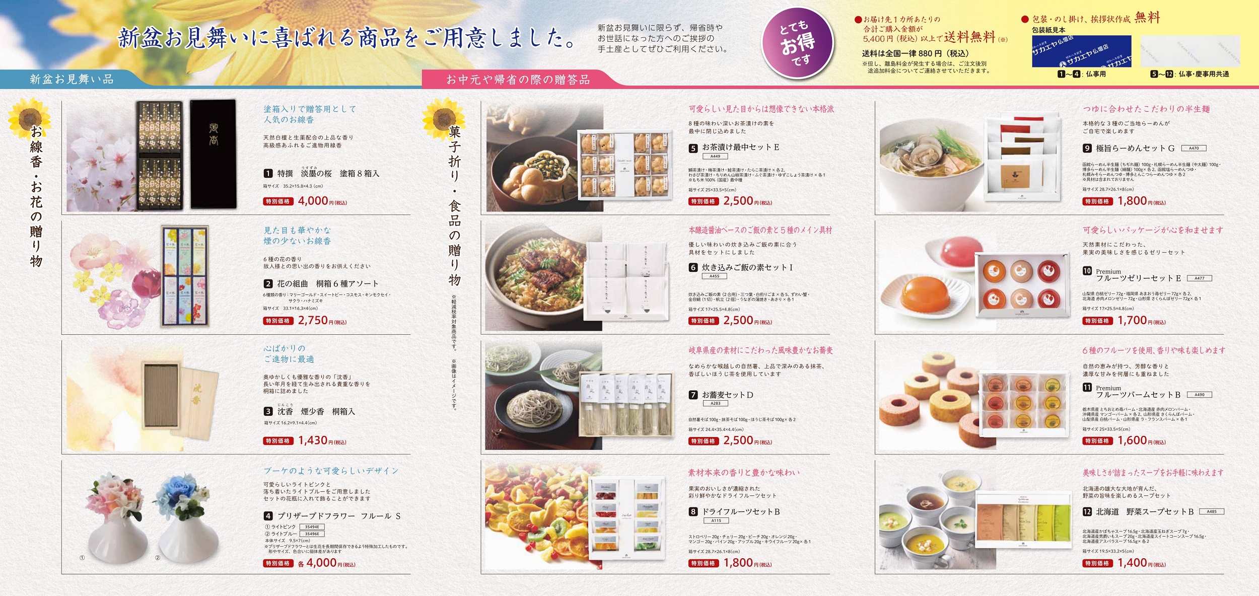 新盆お見舞いとしてお使いいただけるお品物を特別価格にてご用意しております。