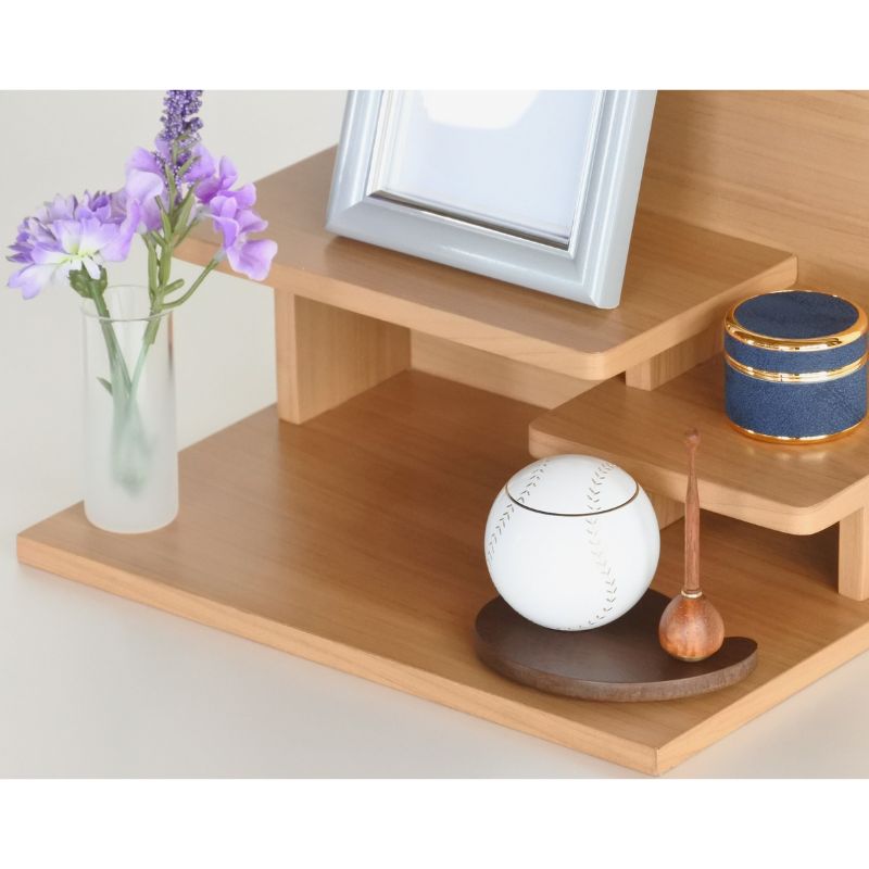 オススメポイント①シンプルでどの場所にもなじむデザイン②美しい木目調プリント③段差があるためお飾りするスペースが充実、段下も広くご使用いただけます